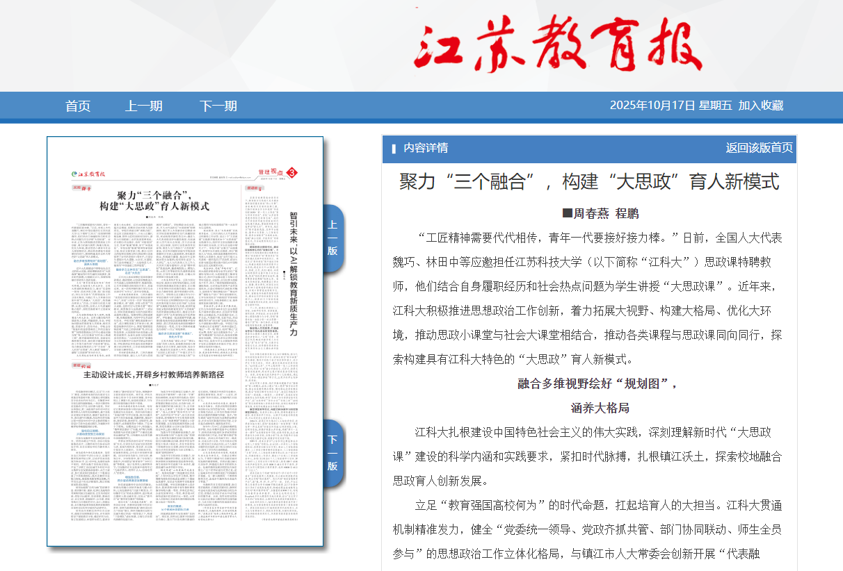 中国教育报头条报道党委书记杨建新署名文章《融合创新助推新质生产力发展》