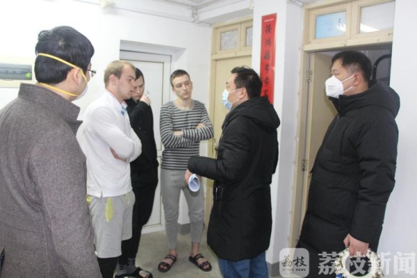 外事管理办公室主任严涌嘉在人手短缺的情况下,主动配合留学生工作办公室开展宿舍排查、防控知识宣传、物资保障等工作,并与镇江市外事办公室保持联系与沟通,时刻关注各驻华使领馆发布的相关信息。