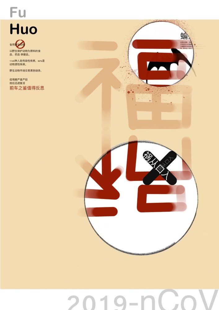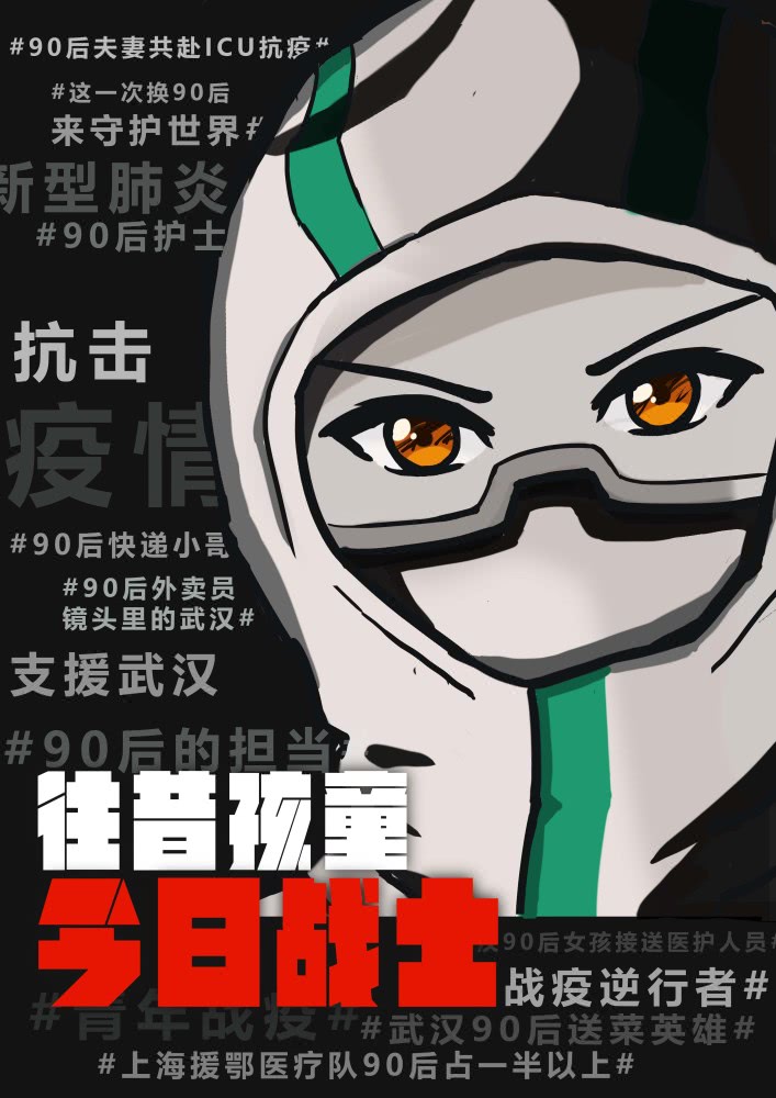 机械学院2017级工业设计专业的孙梦同学共设计了《战疫》《生死狙击》《全民抗疫》《自食》4幅作品。“作为学生,我很敬佩那些具有自我奉献精神的医生、组织检查的警察,以及所有捐献自己一份力量的人。我也想尽自己所能,将温暖与助力通过作品的形式展现出来。”孙梦说。