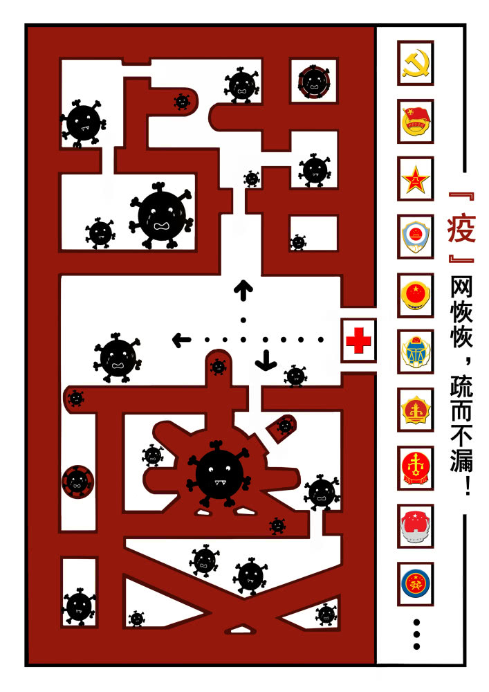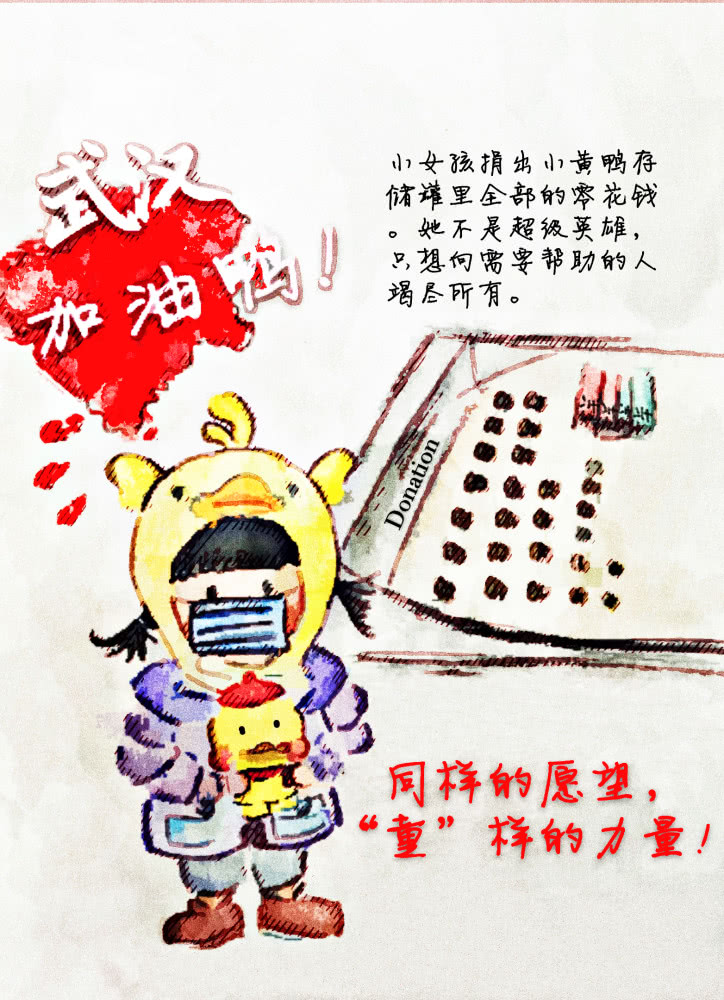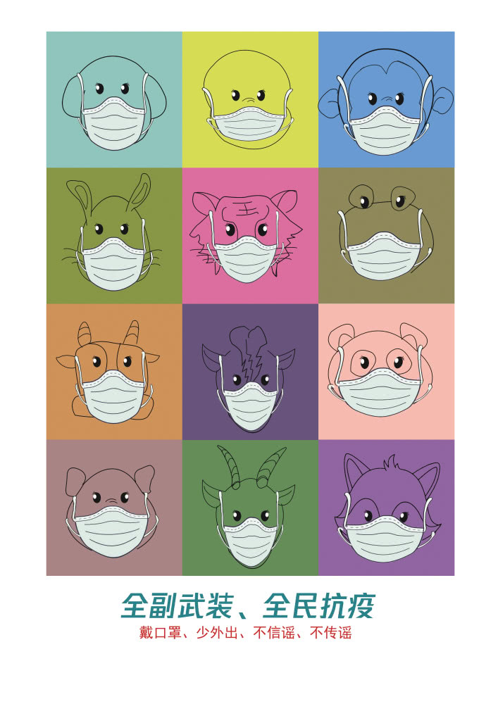 2019级工业设计专业的马微在家乡四川遂宁做抗“疫”志愿者,他创作的作品叫《众志成城 共同抗疫》。马微说:“有人在前方抗战,有人在后方努力,这才是全民抗‘疫’。”