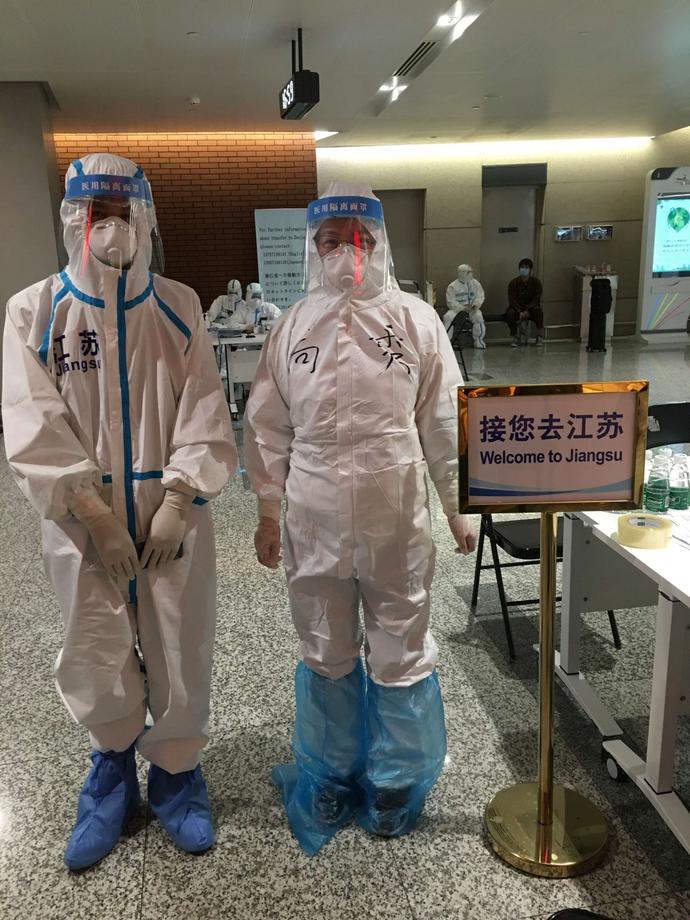 3月23日出征仪式上,高秀说自己“两年来,时刻感到学校和学院家文化的温暖,也未对学校和学院有贡献,如今才有机会尽绵薄之力。在以色列学习时身处战火中,害怕的时候是志愿者的安慰陪伴走过焦灼,今天终于能为别人送去安慰了。”任务来得如此迅速,踏上征程便直赴战场,23日早上10点从镇江出发,下午5点高秀已经在上海虹桥机场护送第一批入境人员前往昆山进行边检分流。