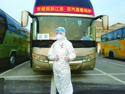 同事们担心高秀安全:“病毒无孔不入,害怕吗?”她说:“不怕,我们身上写着‘江苏’二字,他们看到了我们,就像看到了家人。家的爱是无穷的。”
