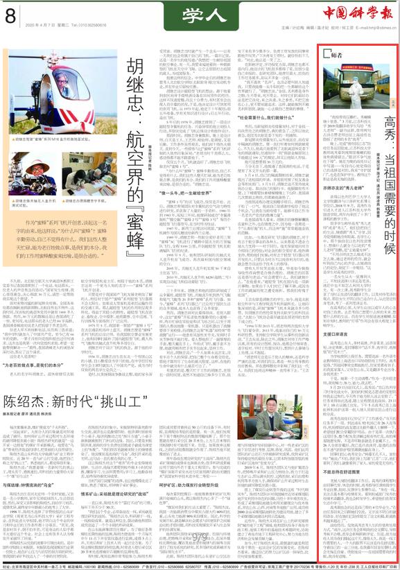 《中国科学报》 (2020-04-07 第8版 学人)