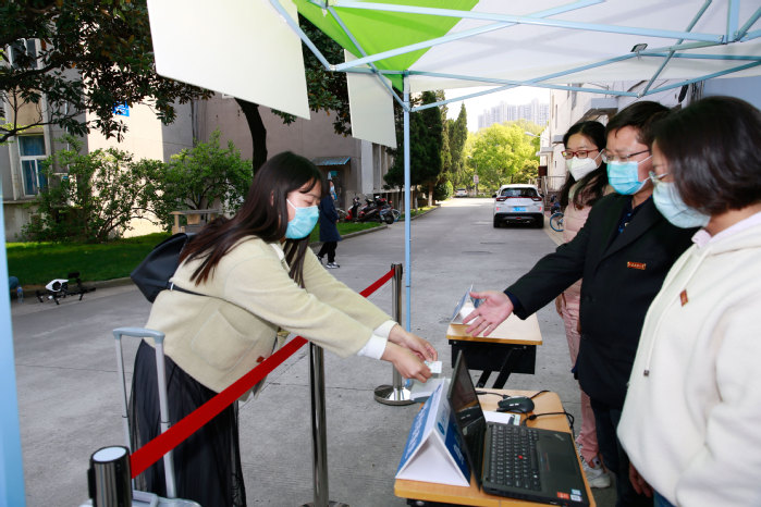 “米兰网页版页面登录疫情防控演练开始。” 4月15日下午14:30,随着校领导一声令下,一队辅导员扮演的返校学生统一佩戴口罩,保持安全距离,有序通过校门口测温点。随后听从引导进入身份证和苏康码查验点,完成“一测二查三核”流程后进入校园,步行至宿舍区大门处接受第二次测温,再凭借校园卡刷卡通关进入宿舍。
