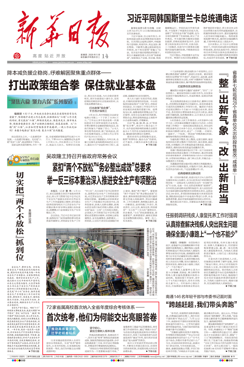 新华日报 2020年5月14日 头版