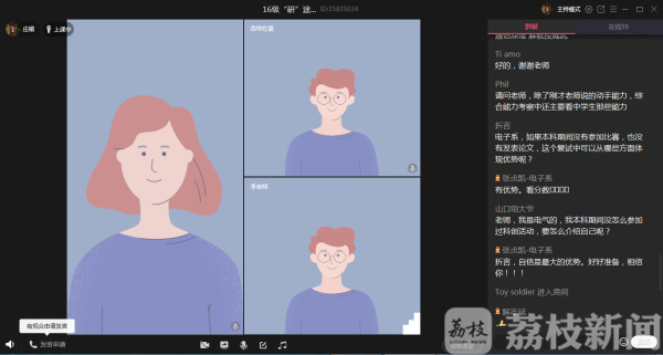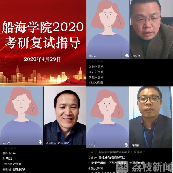 机械学院院长周宏根针对工科学生的特点,提出“思维敏捷”“技术流”和“实在”等考研网络复试的三个核心“关键词”,帮助学生提高复试成功率。船海学院、经管学院、材料学院还邀请往届读研校友、复试成功同学走进直播间,为复试学子传经送宝,有效提高考研学子复试效率。
