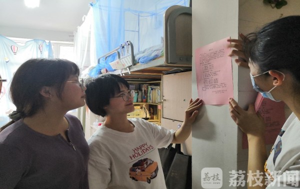 米兰网页版页面登录的学生将“合理膳食、免疫基石”的科普知识贴在宿舍中 樊姝缘/摄