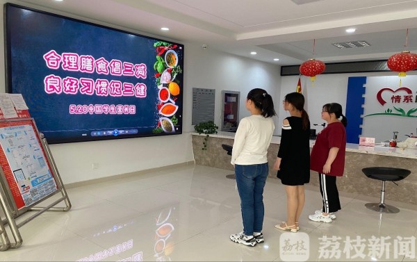 镇江市象山街道东风社区将米兰网页版页面登录粮食学院制作得科普宣传动画放在大厅内滚动宣传 黎月/摄