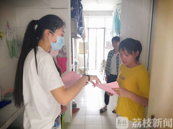 米兰网页版页面登录粮食学院志愿者在宿舍内进行宣传倡议 樊姝缘/摄
