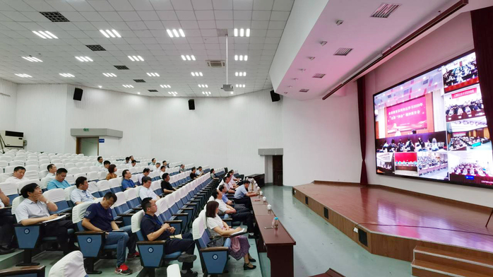 6月1日下午,学校在演讲厅开设视频会议分会场,组织收看全省教育系统传达学习2020年全国“两会”精神视频报告会,校领导班子成员、党群部门负责人、各二级党组织书记参加了报告会。