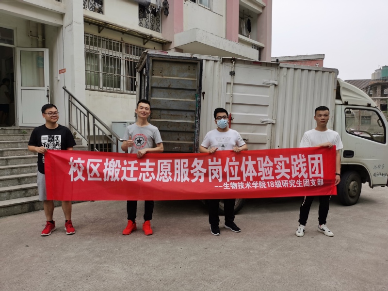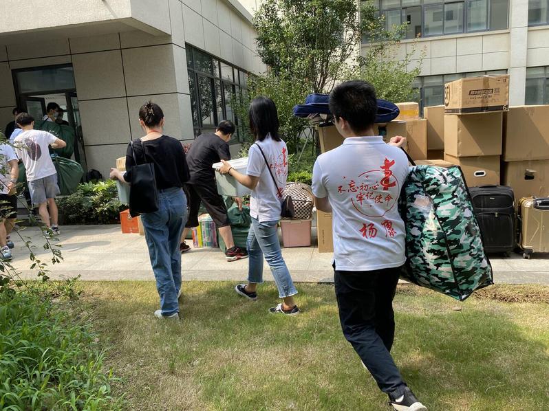生物技术学院18级研究生团支部的7名同学开启了一项特殊的暑期实践项目,他们组建成“新校区搬迁志愿服务岗位体验实践团”,义务帮助学弟学妹搬家。团支书郭际云说,“我们找宿管阿姨要了搬迁的日程表,按照日程安排几乎每天早上都来帮忙,我们觉得做这件事很有意义。