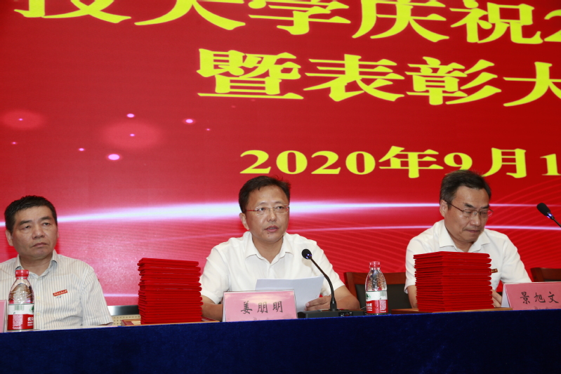 校长周南平作《立德树人奋进担当开启学校高质量发展新征程》主题讲话。周南平代表学校向辛勤工作的广大教师和教育工作者致以节日的问候,向为学校事业发展作出贡献的老同志致以崇高的敬意,并向受到表彰的先进集体和先进个人表示热烈的祝贺。他说,今年教师节的主题是:立德树人奋进担当,教育脱贫托举希望。强国必先强教,强教必先强师。每一位教师都要自觉增强立德树人、教书育人的使命感和责任感,不断提高教育教学质量和科学研究能力,当好民族未来的筑梦人,当好科技高峰的攀登者!