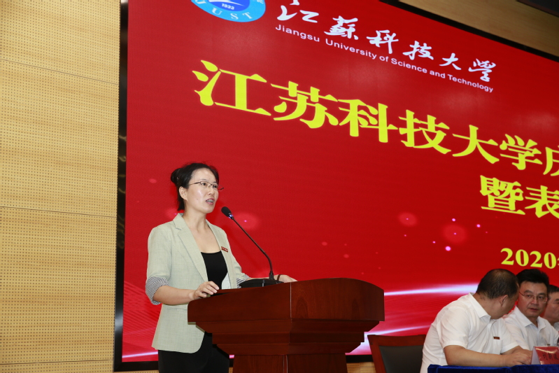 党委副书记、副校长景旭文宣读《关于表彰江苏省五一劳动奖和江苏省工人先锋号的决定》《中共镇江市委、镇江市人民政府关于表彰镇江市劳动模范的决定》《第三届江苏省本科高校青年教师教学竞赛暨第五届全国本科高校青年教师教学竞赛选拔赛结果通报》《关于表彰2019-2020学年优秀教师、优秀教育工作者和先进集体的决定》;副校长姜朋明宣读《关于表彰2019-2020学年优秀辅导员、优秀学业导师和优秀班主任的决定》。Oleg(挪威)被授予江苏省五一劳动荣誉奖章,李滨城被授予镇江市劳动模范称号,闻燕和周瑜分别荣获第三届江苏省本科高校青年教师教学竞赛暨第五届全国本科高校青年教师教学竞赛理科组二等奖和工科组二等奖。王治均等32人被授予“优秀教师”称号、卜江春等19人被授予“优秀教育工作者”称号、船舶与海洋工程学院船舶设计教研室等10个单位被授予“先进集体”称号。夏志平等18名同志被授予“优秀辅导员”称号,牛建杰等62名同志被授予“优秀学业导师”称号,郑艳芳等8名同志被授予“优秀班主任”称号。