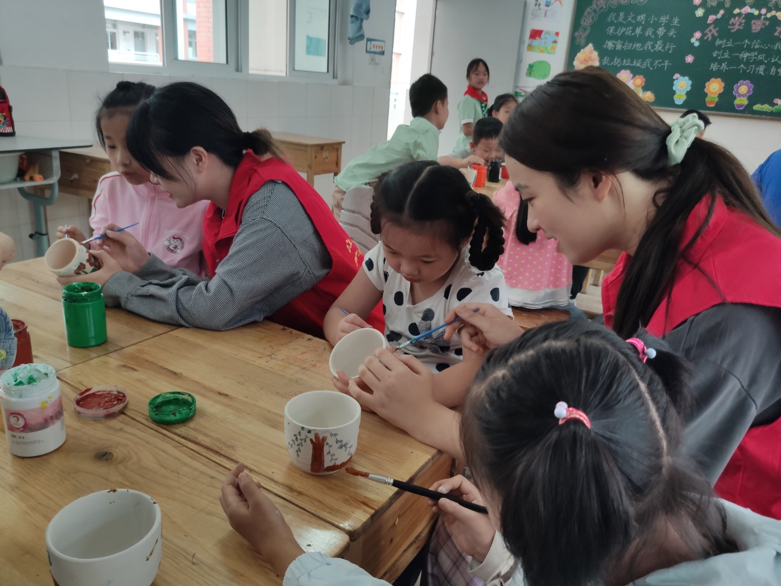 2020年9月21日,米兰网页版页面登录经济管理学院社会实践部志愿者来到镇江市李家大山小学,开展“陶罐上绘秋分习俗”主题教育活动,指导小学生描绘秋分习俗主题陶罐,了解秋分传统民俗,迎接秋分节气的到来。