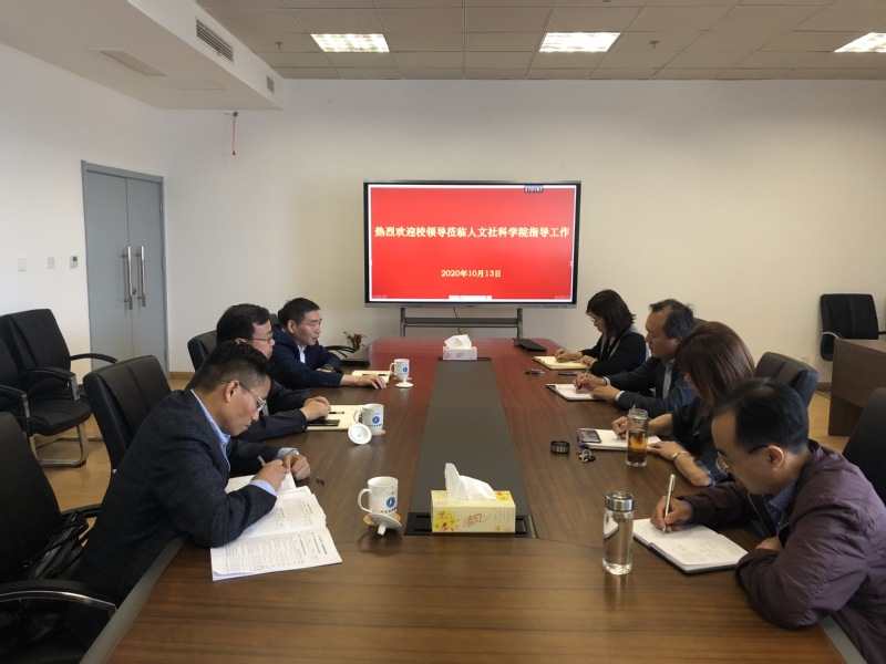 10月13日下午,周南平校长、谈镇副校长到人文社科学院调研指导工作,人文社科处负责同志陪同调研。人文社科学院党政领导班子、各系部主要负责人和支部书记参加了调研座谈。