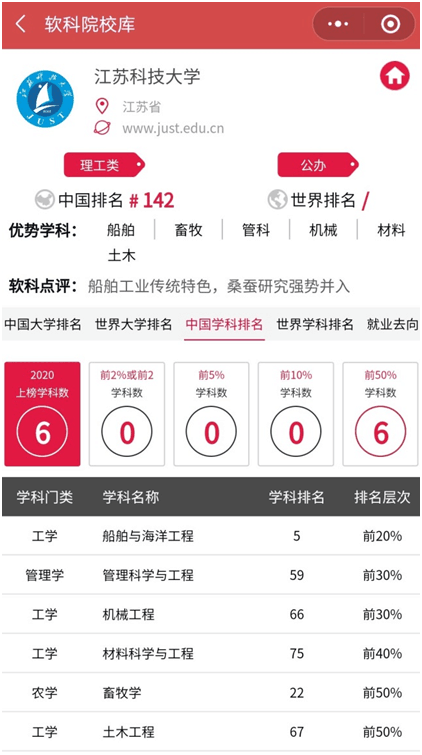 上海软科10月15日发布的“2020软科中国最好学科排名”显示,我校船舶与海洋工程、管理科学与工程、材料科学与工程、畜牧学、机械工程、土木工程6个学科上榜。其中,船舶与海洋工程学科排名位列全国第5位,进入国内前20%;管理科学与工程学科国内排名第59位,排名国内前30%;机械工程学科国内排名第66位,排名国内前30%;材料科学与工程学科国内排名第75位,排名国内前40%;畜牧学学科国内排名第22位,排名国内前50%;土木工程学科国内排名第67位,排名国内前50%。