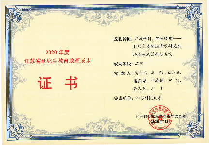 “产教协同,经世致用——船舶集成制造管理研究生培养模式创新与实践”获江苏省研究生教育改革成果二等奖1项,“船舶制造业信息化研究生导师团队”获第二届江苏省“十佳研究生导师团队”提名奖。