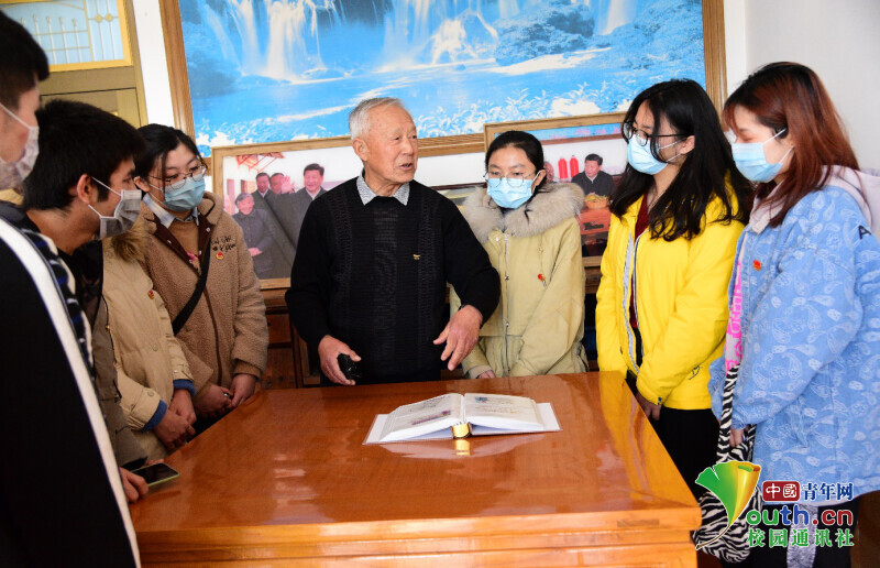实践团队员们听老人讲述生活变迁。中国青年网通讯员石玉成摄