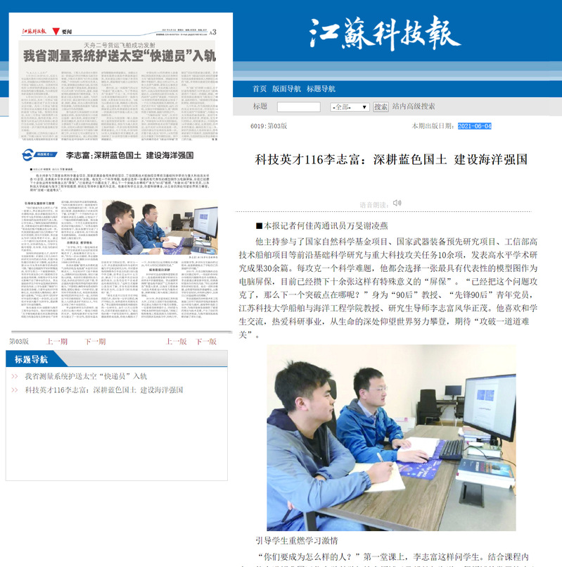 科学研究是高校教师重要职责之一,也是提高课堂教学和研究生培养水平的重要基础。李志富紧密围绕“建设海洋强国”“江苏海洋开发”等重大需求,以海洋工程装备与高技术船舶设计研发为服务对象,深耕深海工程与极地工程前沿领域。