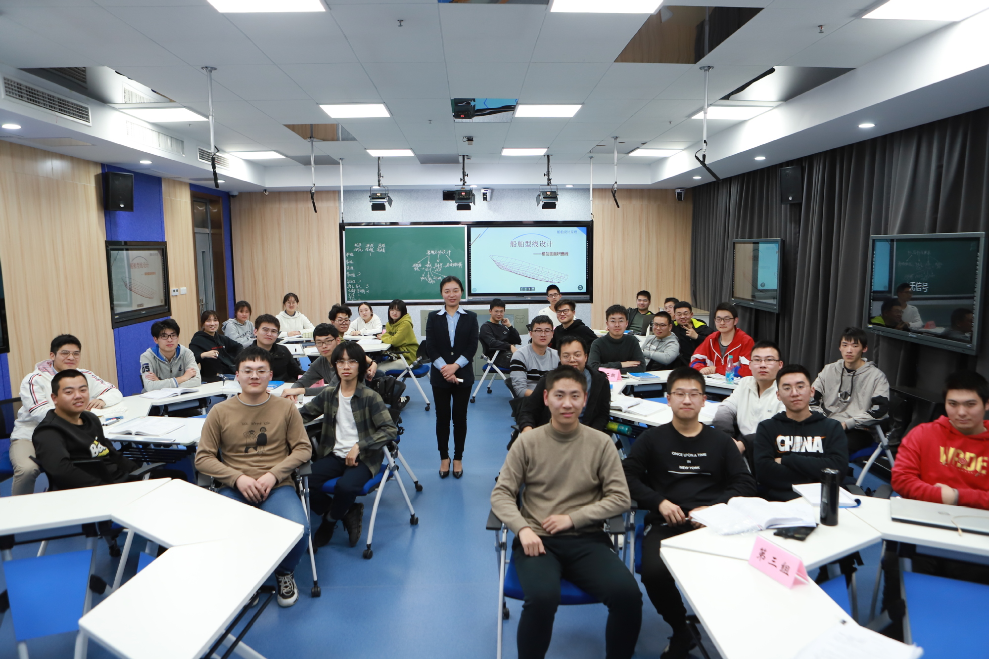 陈悦还关注时事政治,把学习收获融入教学,让课程思政赋予专业课崭新内涵。在《船舶设计原理》绪论部分的教学中,陈悦结合我国船舶设计的发展历程,用老一代科技工作者忘我奉献精神,激发学生爱国情怀,树立为中华民族伟大复兴贡献力量的远大理想。主讲“船舶主要要素确定”部分,引入“小数点”的故事,教导学生形成严谨的作风,重视职业素养,培养学生爱岗敬业的工匠精神。陈悦的课堂,从不缺少热烈的分享与讨论,以润物无声的方式,引导青年学子坚定理想信念,树立报国之志,形成了专业与思政兼修的特色课堂。