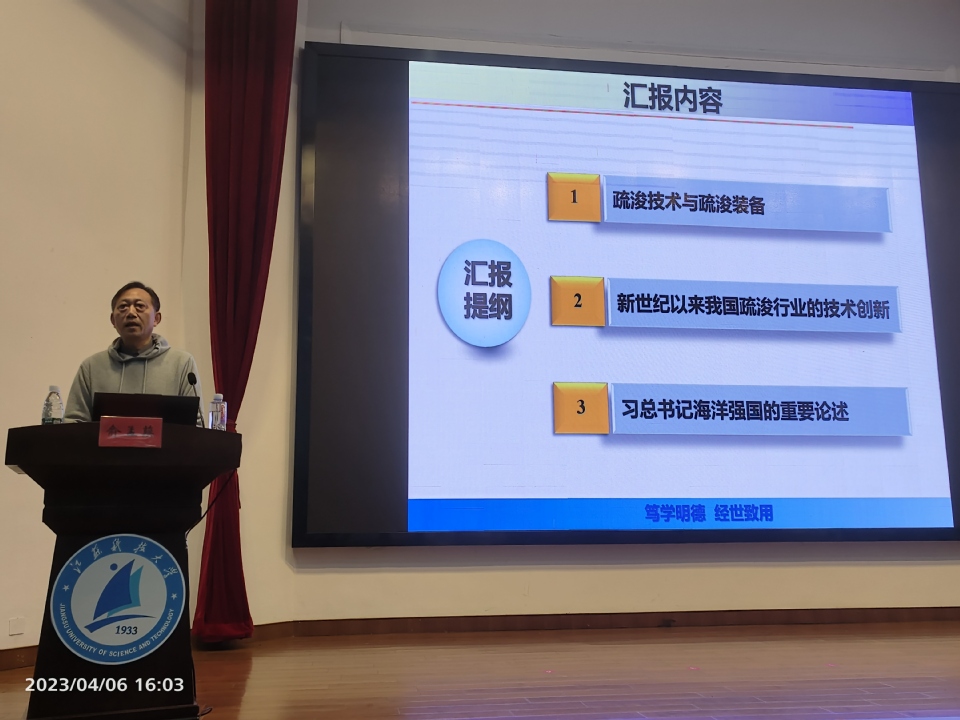 为进一步加强新生对我校优势传统学科的认知,了解船舶行业肩负的服务民生和服务国防的重大使命,让同学们切实感受大国重器、树立报国热情,4月6日下午,深蓝学院邀请校国家科技进步特等奖获得者俞孟蕻教授在梦溪校区演讲厅主讲2022级新生转型教育课“船视界”系列第一讲“‘造岛神器’——从我国疏浚技术的创新发展感受中国力量”。授课仍以线上线下相结合的形式开展,深蓝学院部分教师和新生代表300余人在现场听讲,其他师生在教室同步收看直播。