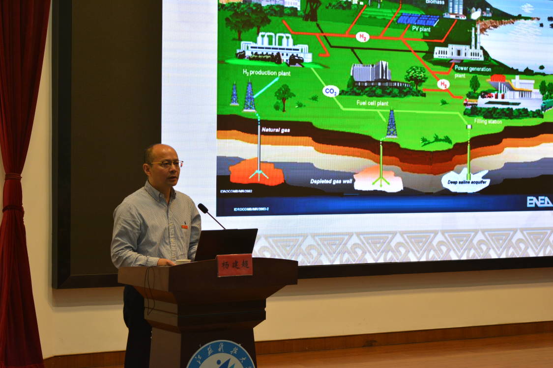 授课中,姚教授用图文并茂或动图的方式向同学们介绍了电厂蒸汽动力系统、蒸汽轮机、内燃机等典型的动力机械与装置,指出节约能源及降低排放是推动动力机械发展的主要驱动力。他也为同学们详细介绍了当今社会所使用的一些先进的新能源技术,其关键是针对传统能源利用方式的改进优化和传统能源的替代目的就是节能、减排。姚教授还对最新的生物燃料电池、生物制氢技术等最新技术和核聚变能这一未来新能源作了简要介绍,向同学们打开了一扇通往前沿科技的窗口。最后,姚教授指出,21世纪是“氢经济“时代,最终社会愿景将会是“天蓝水清地绿,人类自然和谐”。