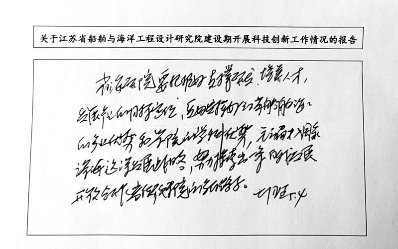 近日,江苏省副省长胡广杰对江苏省船舶与海洋工程设计研究院工作作出批示:省海研院要把握好支撑研发、培养人才、发展产业的目标定位,更好发挥好江苏船舶海工的产业优势和学校的学科优势,主动融入国家深海远洋发展战略,努力探索出一条自我发展、开放合作高质量建院的新路子。