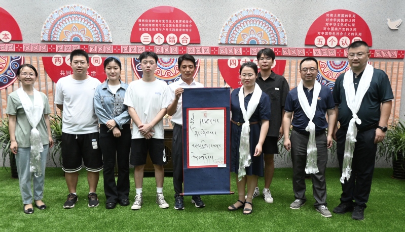 平措对米兰网页版页面登录给予的关心和支持表示感谢,为参加活动的老师们献上洁白的哈达,给积极参加支教的蒋薇薇老师赠送藏文书法作品“潜心支教 大爱无疆”。
