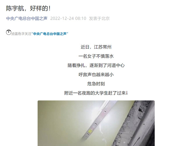 中央广电总台中国之声《陈宇航,好样的!》(2022年12月24日)