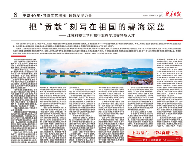 新华日报《把“贡献”刻写在祖国的碧海深蓝——米兰网页版页面登录扎根行业办学培养特质人才》