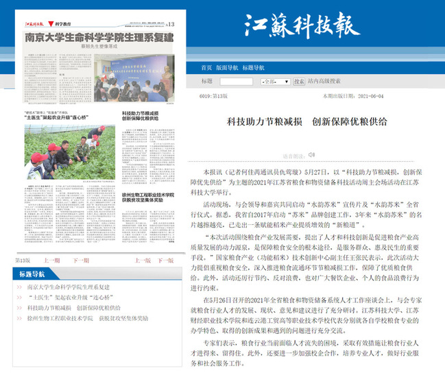 江苏科技报《科技助力节粮减损 创新保障优粮供给》(2021年6月4日)