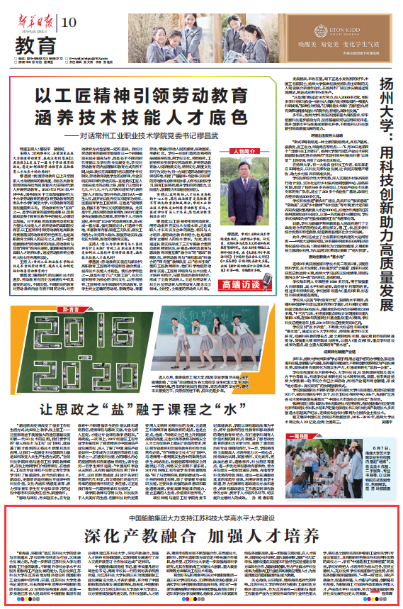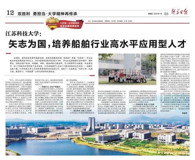 新华日报《米兰网页版页面登录:培养船舶行业高水平应用型人才》(2020年7月23日)