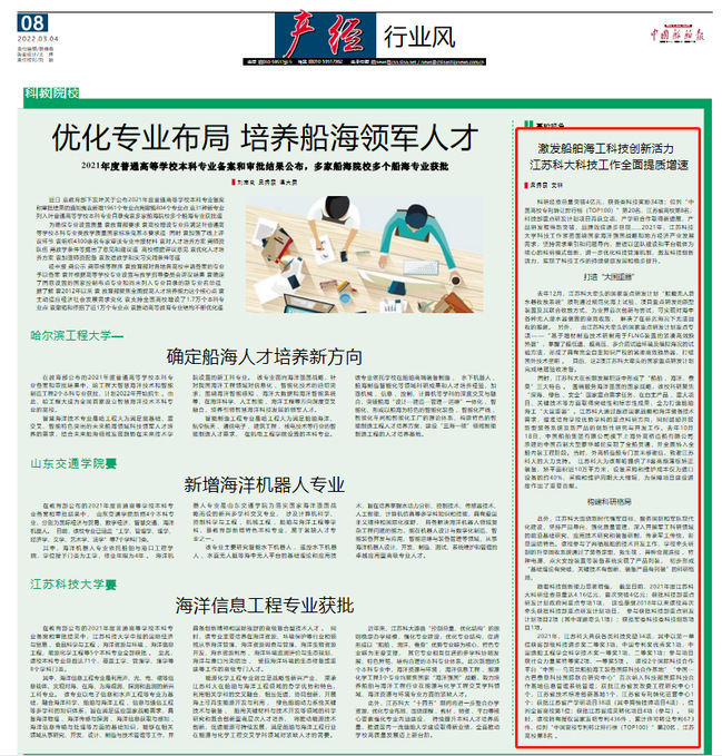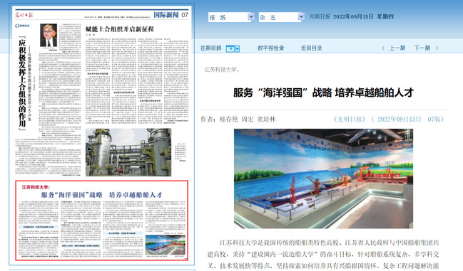光明日报《米兰网页版页面登录 服务“海洋强国”战略 培养卓越船舶人才》(2022年9月15日)
