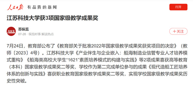 人民日报《米兰网页版页面登录获3项国家级教学成果奖》(2023年7月26日)