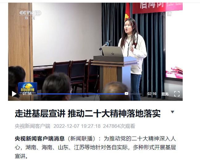 央视新闻《走进基层宣讲 推动二十大精神落地落实》(2022年12月7日)