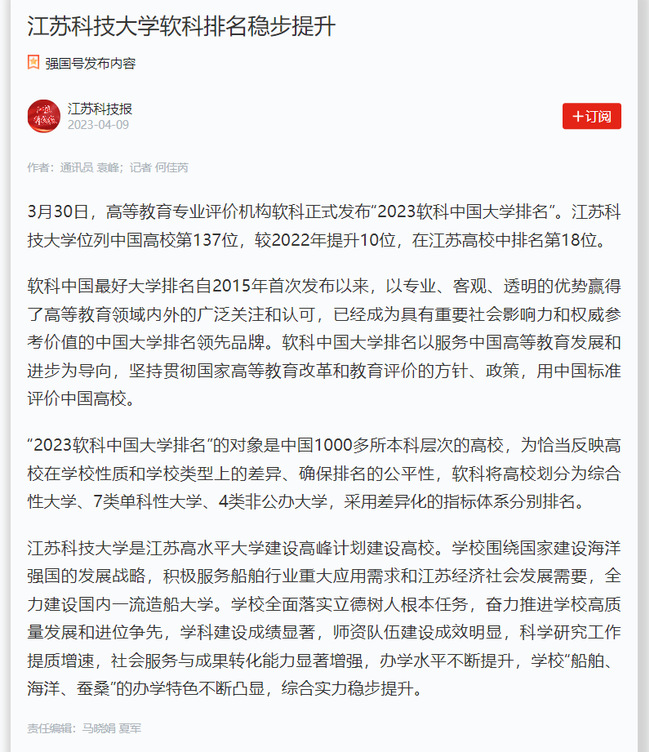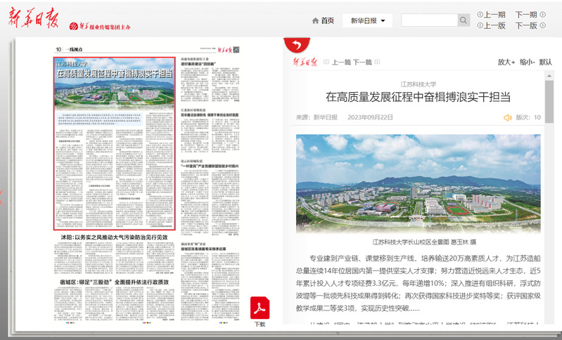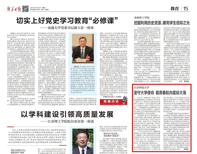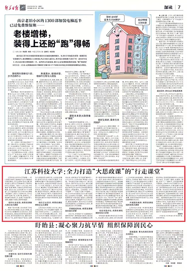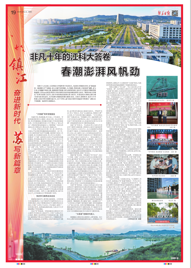 学校立足办学特色,全力服务国家重大战略需求,主动为行业和区域经济社会发展作贡献,扎实推进高水平大学建设,多家主流媒体聚焦学校新突破,中国教育报、新华日报等头条刊发学校办学成果。
