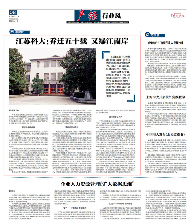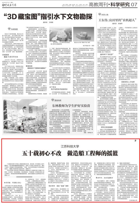 中国教育报《五十载初心不改 做造船工程师的摇篮》(2020年5月11日)