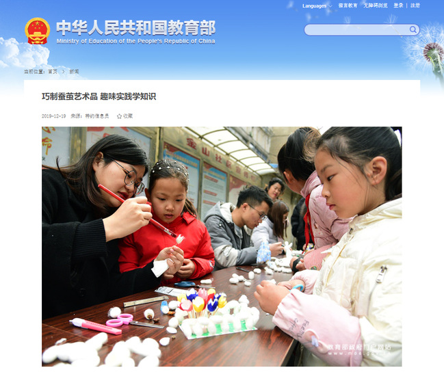 中华人民共和国教育部《巧制蚕茧艺术品 趣味实践学知识》(2019年12月19日)