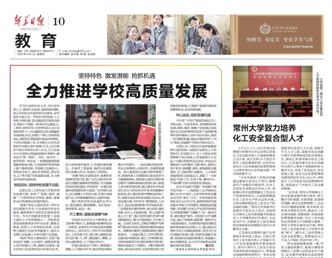 新华日报《坚持特色 激发潜能 抢抓机遇 全力推进学校高质量发展》(2020年6月5日)