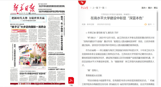 新华日报《把握机遇铆足干劲,奋力迈步国内一流造船大学新征程》(2022年12月29日)