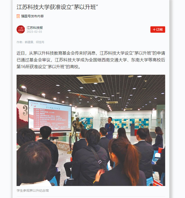 学习强国《米兰网页版页面登录获准设立“茅以升班”》(2023年2月3日)