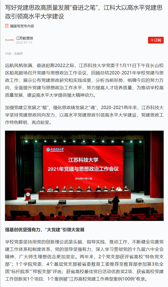 学习强国《写好党建思政高质量发展“奋进之笔”,江米兰网页版页面登录以高水平党建思政引领高水平大学建设》(2022年1月13日)