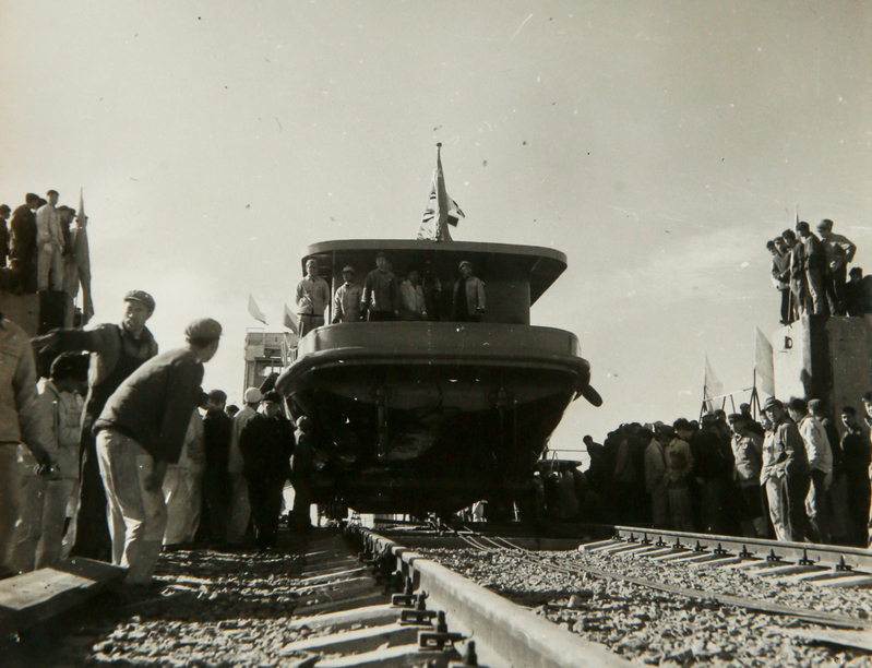 1973年,镇江船校附属工厂建造60吨油驳下水
