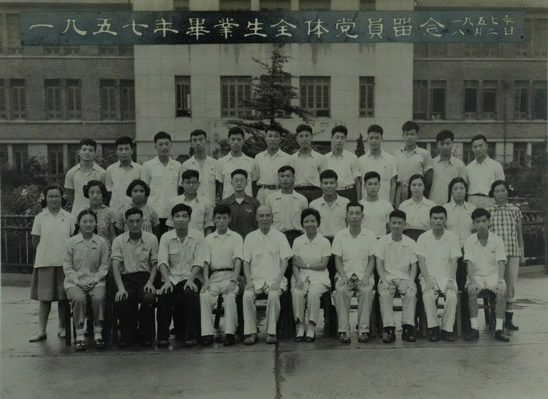 1957年上海船校首任校长余西迈与毕业生全体党员合影 (前排左5为余西迈)