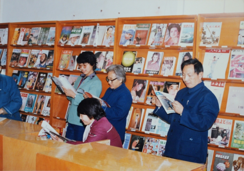 1985年,镇江船舶学院陈宽院长等欢迎英国文教专家艾伦·帕尔(右二)前来教授英语