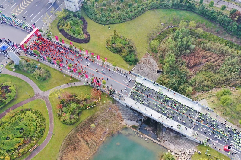 8点59分,主席台领导嘉宾鸣笛发令起跑,选手们铆足劲冲过起点,释放青春正能量。