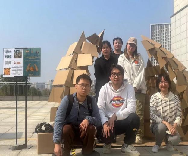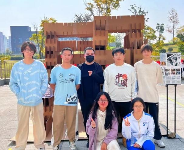 走进长山校区图书馆南门广场,受邀出席的嘉宾看到,一座座用瓦楞纸板搭建而成的小空间映入眼帘,它们设计多元,创意感满满,将校园内原本空旷宁静的广场变成了建筑艺术的殿堂。随后,各专业老师在学生的引导下现场评审作品。学生与指导教师点对点学习,吸取改进经验。
