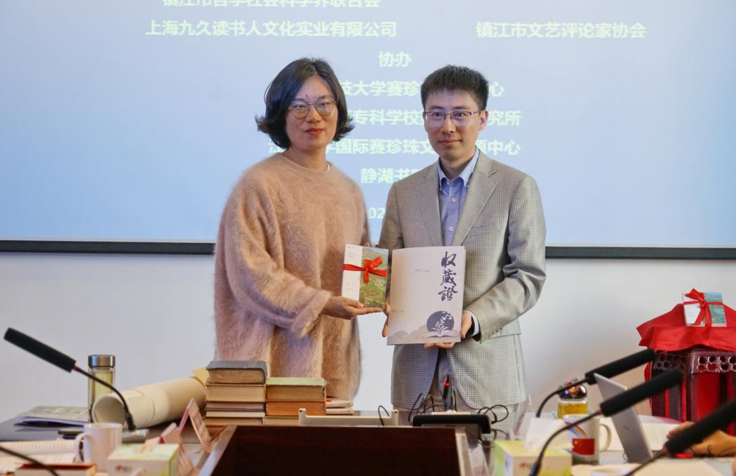 本次新书发布会能够让读者走进了这位伟大女性的家园书写,对赓续城市文脉、推动城市文化品牌建设有着重要意义,也给予外国语学院赛珍珠研究中心进一步挖掘赛珍珠文化遗产、拓展赛珍珠研究空间的契机。外国语学院张媛、胡继云老师撰写分享文稿印刷成集,朱莹、张琳、张天皓老师应邀参会,朱莹老师代表学校接受赠书。