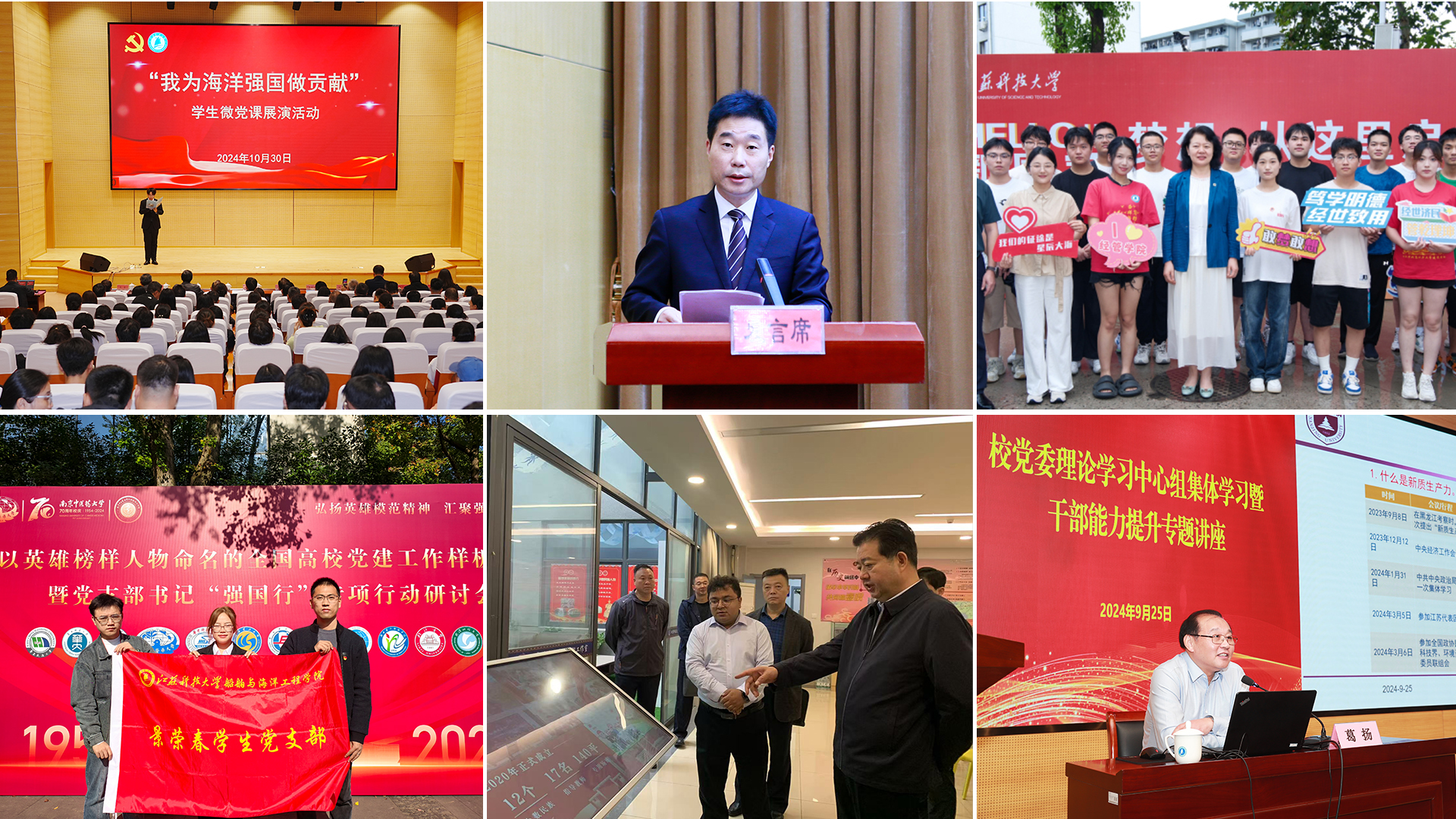 接受省委第六轮巡视第二巡视组巡视,深入宣讲党的二十届三中全会精神。筹备成立江苏省船舶与海洋产业链党组织、江苏省蚕桑丝绸产业链党组织,服务地方经济发展,党委书记杨建新在镇江市科技大会上作交流发言得到大会的热烈反响。坚持党管人才,“深蓝高端人才”党支部充分发挥高端人才的智囊优势,强化科学研究,增强服务意识。实施“干部能力提升行动计划”,全面提升干部“七种能力”“八项本领”。景荣春学生党支部参加以英雄榜样人物命名的全国高校党建工作样板支部研讨会并作经验分享交流。开展“我为海洋强国做贡献”学生微党课展演等特色活动。新增全国高校“双带头人”教师党支部书记“强国行”专项行动团队1个、全国党建工作样板支部1个,10个基层党组织入选第二批全省高校“强基创优”建设计划培育建设单位,1名研究生党员入选全国高校“百名研究生党员标兵”,获全省高校最佳党日活动优胜奖2项。党外人士作用发挥更加充分,4篇社情民意信息被全国政协、民主党派中央采用,30余项成果被省委统战部、省人大、省政协等采用。获评全省红石榴家园精品单位、全省高校统战工作实践创新成果二等奖、全省第二届“铸牢中华民族共同体意识·高校在行动”系列活动“优秀组织奖”。