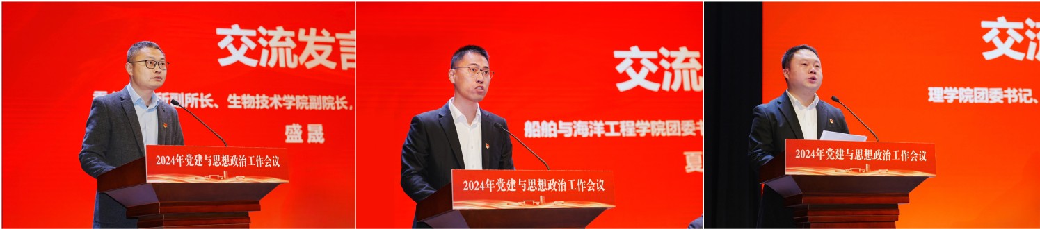生物技术学院副院长、蚕业研究所副所长、春蚕服务社党支部书记盛晟,船舶与海洋工程学院团委书记、景荣春学生党支部书记夏志平,理学院团委书记、党建与思政工作先进个人杨旺林进行交流发言,分享做好党建与思政工作的经验和体会。